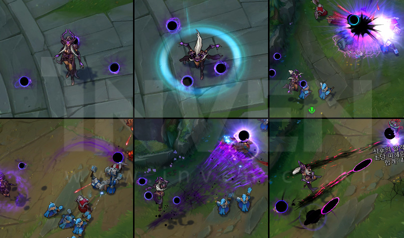 Syndra conjures a Dark Sphere dealing magic damage. The sphere remains and can be manipulated by her other powers.