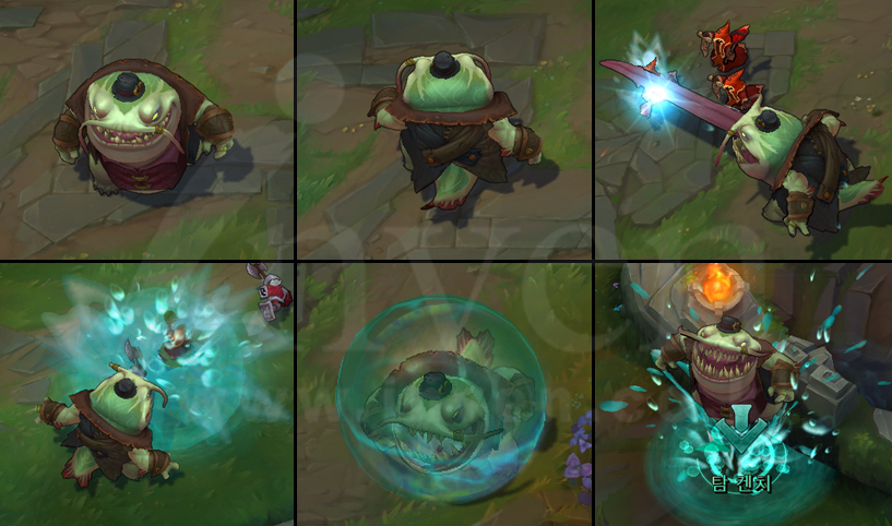 Known by many names throughout history, the demon Tahm Kench travels the waterways of Runeterra, feeding his insatiable appetite with the misery of others. Though he may appear singularly charming and proud, he swaggers through the physical realm like a vagabond in search of unsuspecting prey. His lashing tongue can stun even a heavily armored warrior from a dozen paces, and to fall into his rumbling belly is to tumble into an abyss from which there is little hope of return.