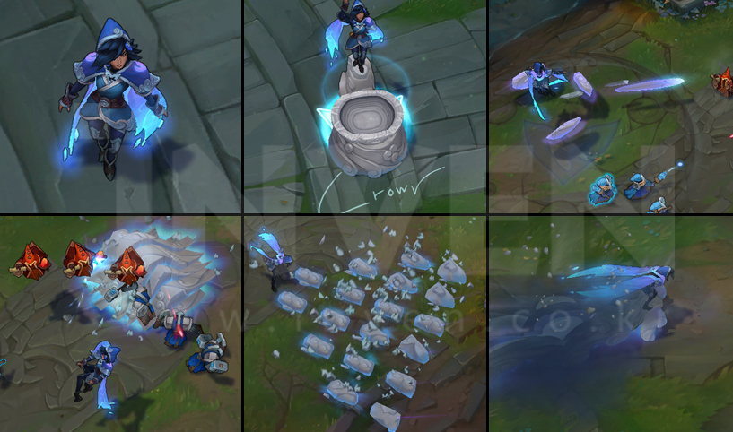 Taliyah throws a volley of rocks in a target direction, moving freely as she casts. This creates Worked Ground below her. If Taliyah casts Threaded Volley on Worked Ground, she consumes the ground to throw a stronger boulder that slows enemies.