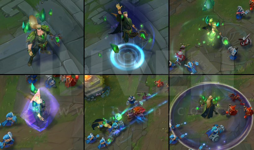 Pulses cosmic energy onto nearby allied champions after a delay, making them invulnerable for a short duration.