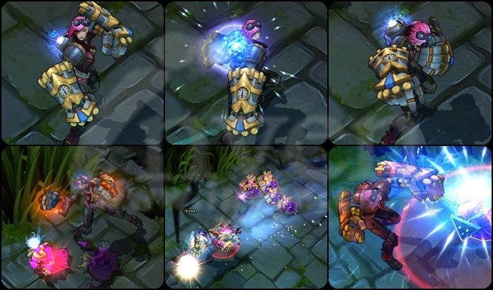 Vi charges her gauntlets and unleashes a vault shattering punch, carrying her forward. Enemies she hits are knocked back and receive a stack of Denting Blows.