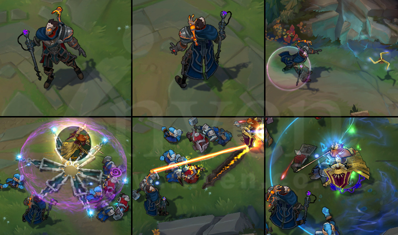 Viktor conjures an Arcane Storm on the field, dealing magic damage and interrupting enemy channels. The storm periodically does magic damage to all nearby enemies and can be redirected by Viktor.