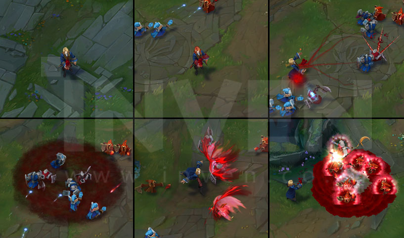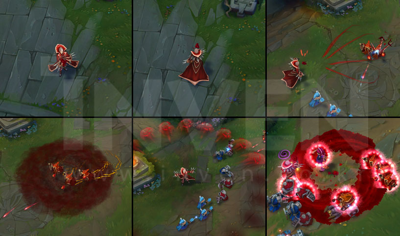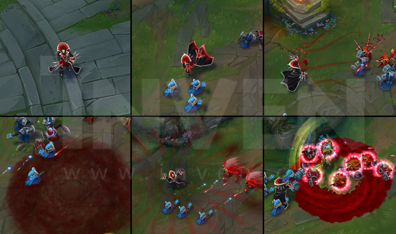 Vladimir infects an area with a virulent plague. Affected enemies take increased damage for the duration. After a few seconds, Hemoplague deals magic damage to infected enemies and heals Vladimir for each enemy Champion hit.