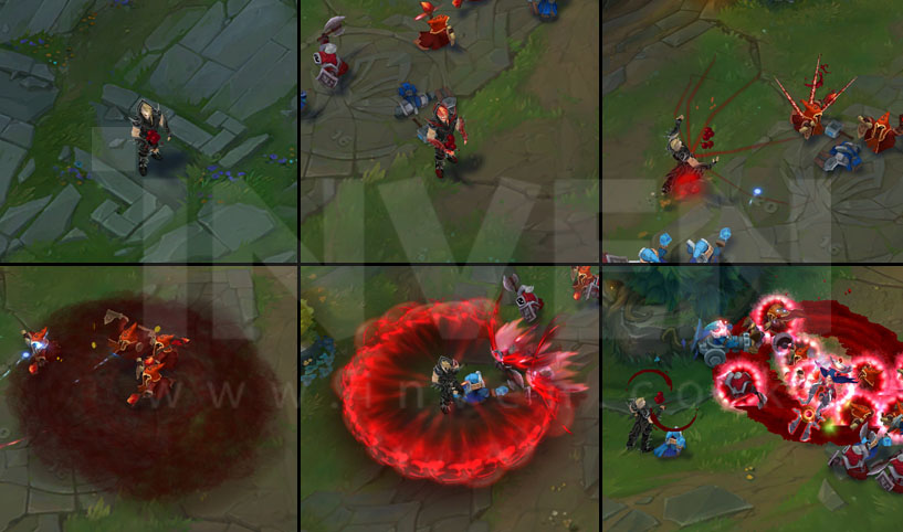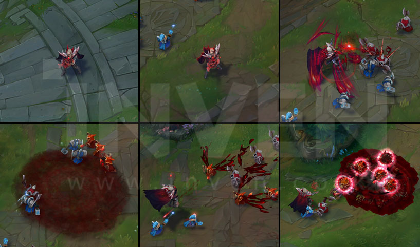 Vladimir sinks into a pool of blood, becoming untargetable for 2 seconds. Additionally, enemies on the pool are slowed and Vladimir siphons life from them.