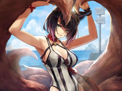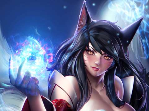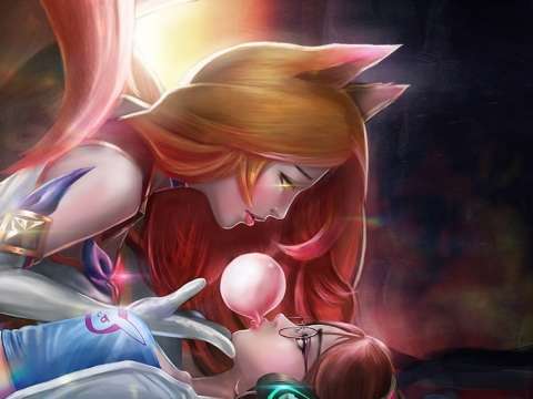 Ahri seducing D.Va - LoL x Overwatch Fanart