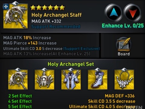 Today's Legendary Gear event will take place from July 14th to 15th. The Today's Legendary Gear event will include the Giant (tank) and Great Demon King (mage) set on July 14th, and the Holy Archangel (support) and Launcher (ranger) set on 15th. The chance you will get 5~6-Star gear will increase when you are drawing from Mixed Rare Gear at the shop during the event period.