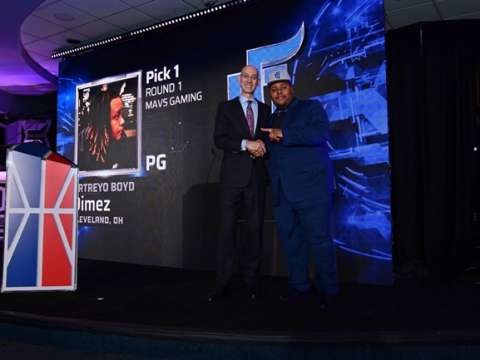 NBA Commissioner Adam Silver announces that Mavs Gaming has selected Dimez (Artreyo Boyd) as the first overall pick in the inaugural NBA 2K League Draft, taking place today at The Hulu Theater at Madi
