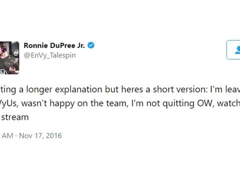 Ronnie “Talespin” Dupree, Jr. announced today that he is leaving NV primarily because he was having a hard time staying motivated. He said that, although the team was doing well and everyo
