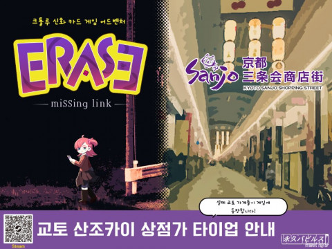 Materials provided by Permanent Papyrus Japanese indie development circle Permanent Papyrus has announced a collaboration between its upcoming title, 'Erase -Missing Link-,' and the Kyoto Sanjo-kai Shopping District.
