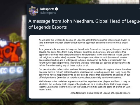 This morning, John Needham, Global Head of League of Legends Esports issued a statement regarding political messages during LoL esports broadcasts. "As we near this weekend's League of Legends World C