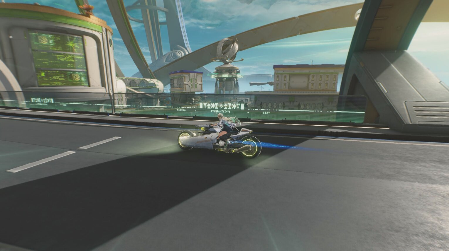 The bike shows a surprising ability to handle terrain.. It possesses climbing capabilities that allow it to ascend even quite steep cliffs without hesitation, and by pressing the E key, players can jump or briefly float in the air, enhancing the enjoyment of overcoming terrain. In Lahai-Roi’s opening area, the Roya Frostlands, gentler slopes replace sheer cliffs, allowing most areas to be traversed directly by bike. Additionally, jump pads and sections where a rope can be attached while riding the motorcycle are provided throughout, offering a different thrill of speed compared to gliding.